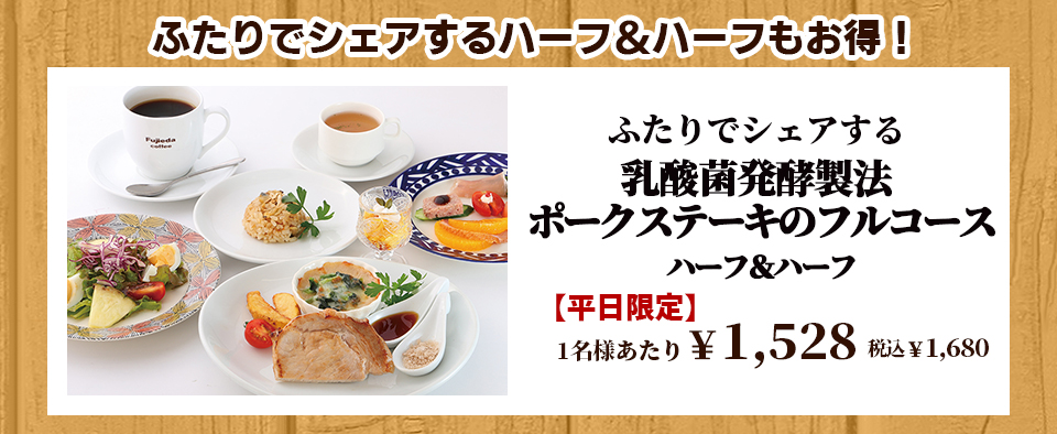 平日限定 二人でシェアできるハーフ&ハーフコース お一人様1,528円(税込1,680円)