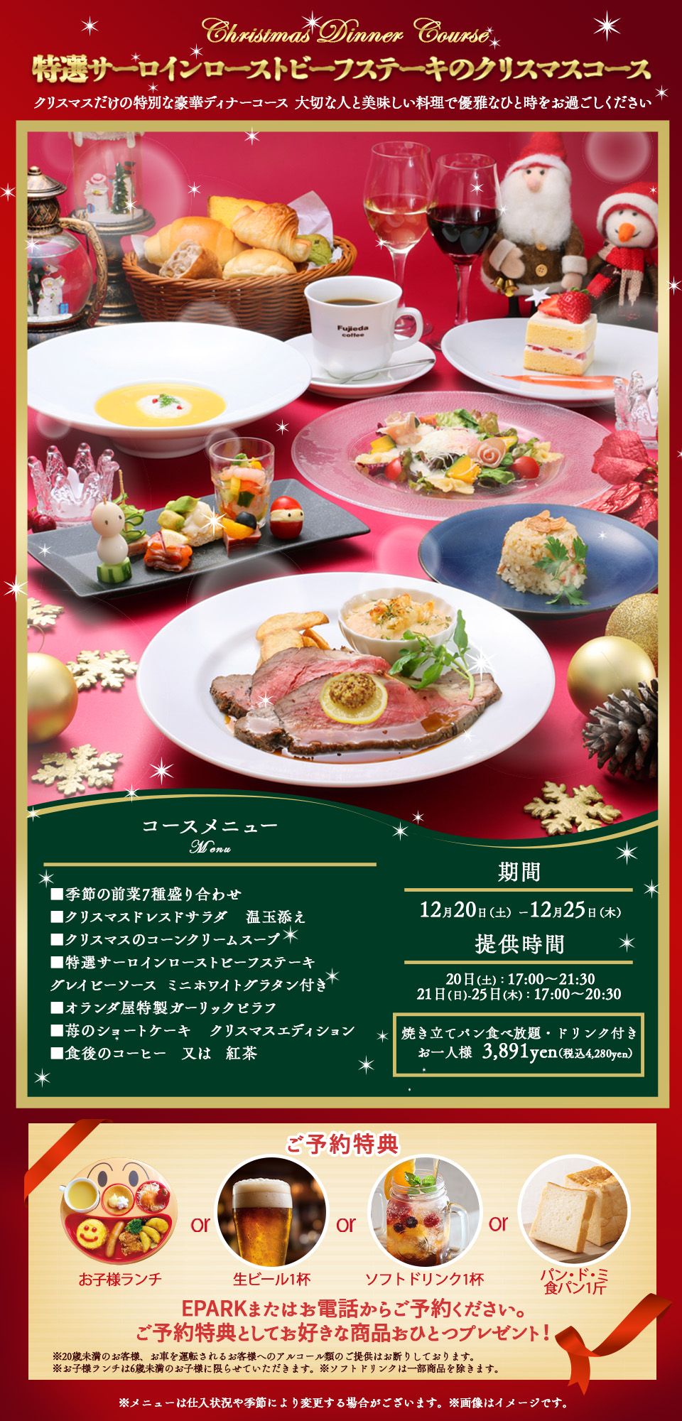 ※クリスマスディナーコースはフジエダハウス、オランダ屋奈良店、高田店、富雄店にて実施いたします。